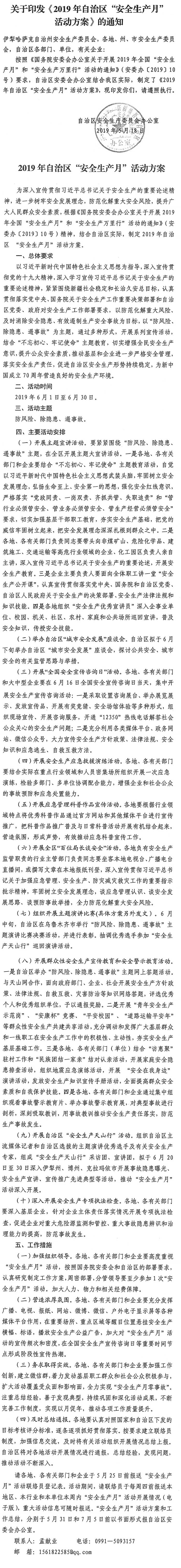 > 新疆維吾爾自治區安全生產委員會辦公室關于印發《2019年自治區“安全生產月”活動方案》的通知