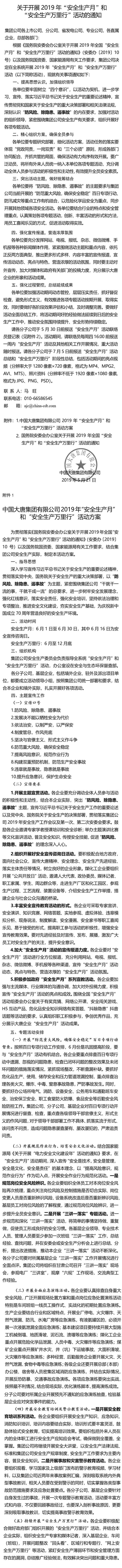 中國中煤能源集團有限公司關于開展2019年“安全生產月”活動的通知