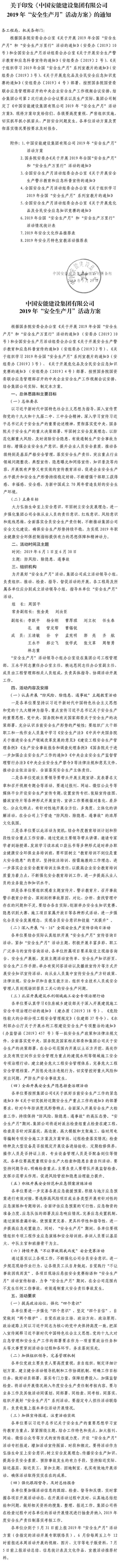 > 中國安能建設集團有限公司關于印發《中國安能建設集團有限公司2019年“安全生產月”活動方案》的通知
