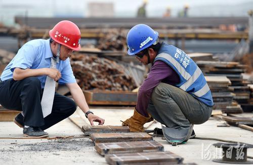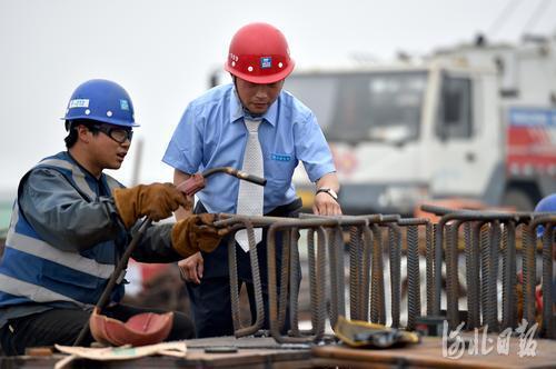 石家莊正定新區綜合管廊項目工地上,項目負責人在進行安全檢查。 河北日報客戶端資料片