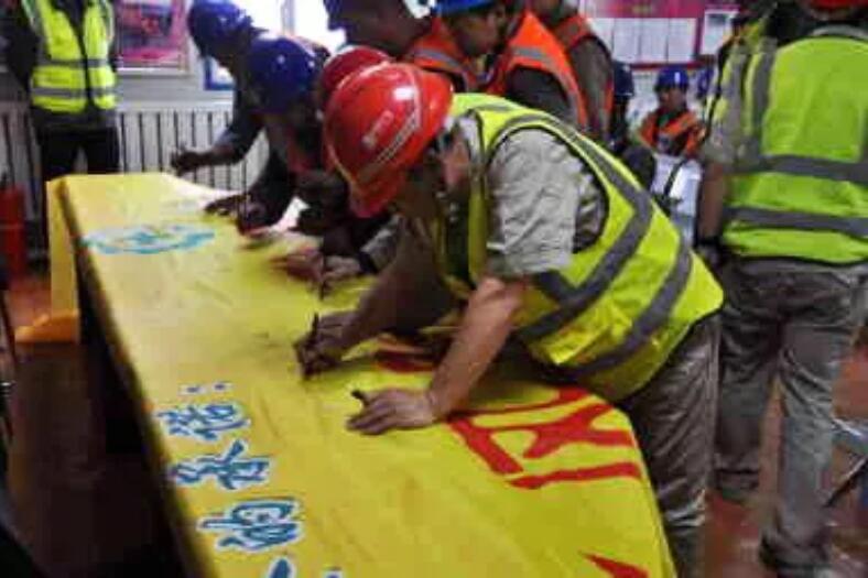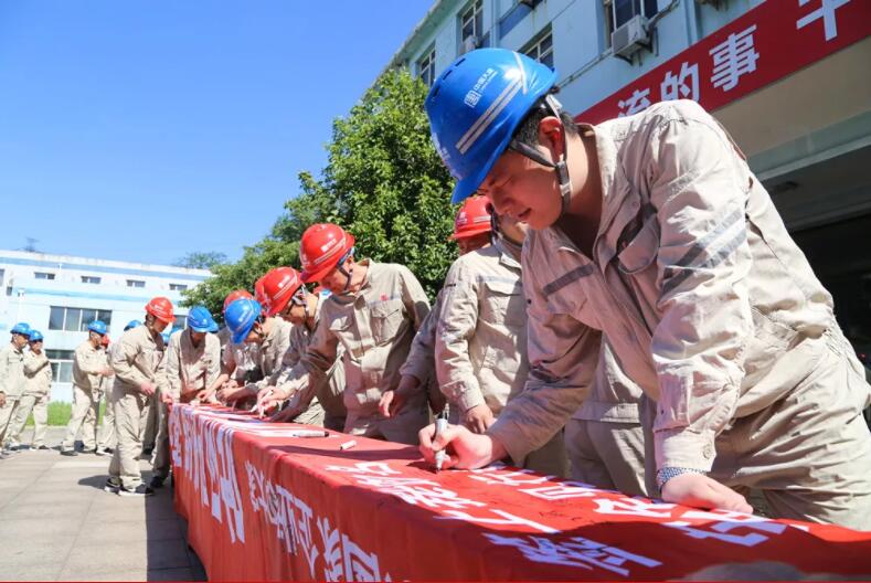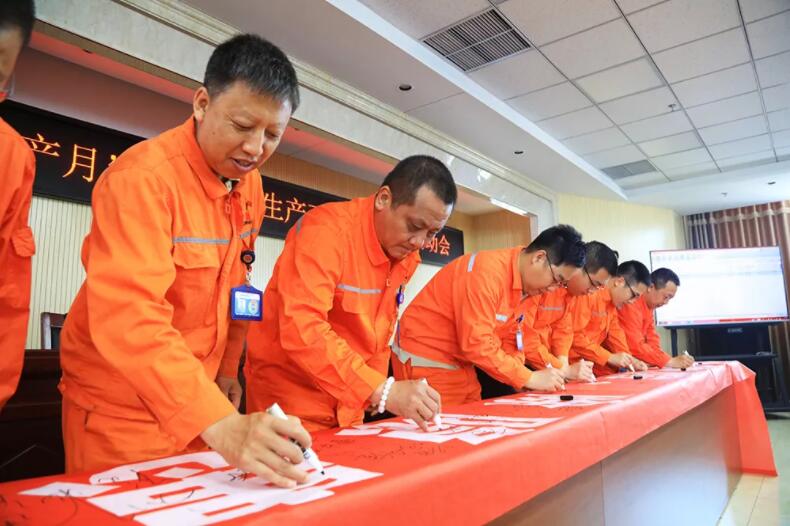 吉林檢修公司霍林河維護項目進行“安全生產月”宣誓,張貼條幅主題宣傳掛圖,烘托“安全生產月”氛圍。