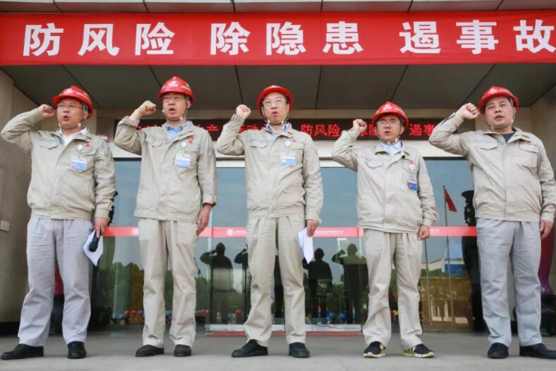 “我鄭重宣誓,牢記安全第一、生命至上……”信陽發電公司舉行了以“防風險、除隱患、遏事故”為主題的2019年“安全生產月”活動啟動儀式,300余名職工參加了啟動儀式,并進行了安全宣誓。(畢秋菊)