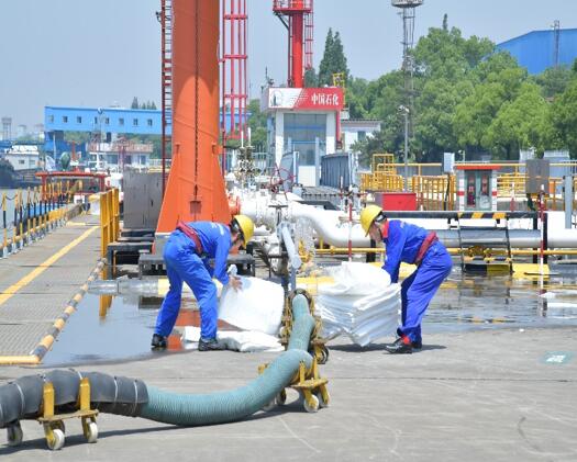 6月4日上午,和風溫潤,浦江瀲滟。中國石化上海石油高橋油庫正在有序作業中。圍墻內儲罐矗立,碼頭上油輪靠泊,油罐車次第緩緩駛離平臺......突然,碼頭上警報聲長鳴,由此拉開了油庫碼頭突發安全事件聯合應急演練的序幕。
