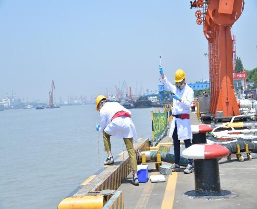 管線封堵完成后,油庫清污人員進入碼頭使用吸油氈吸附泄漏油品。在清理完成后,環保監測人員攜帶檢測儀器,對演練區域的大氣和水質分別取樣檢測,通過數據分析,符合國家和上海市環境質量標準。