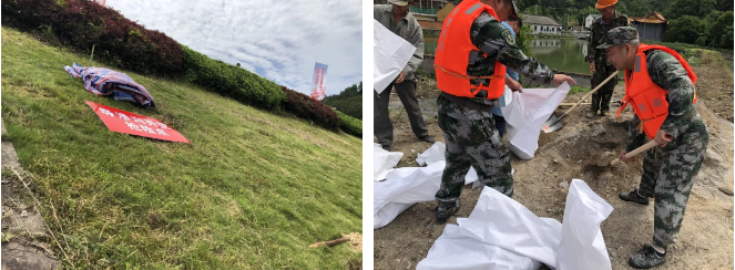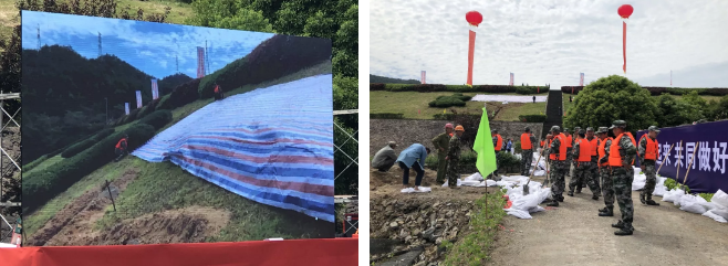 ▲組織民兵搶險應急連隊迅速穿戴好救生衣集結后,前往搶險現場,水利技術專家趕赴現場分析險情,制定應急搶險方案。同時,轉移危險區域群眾。