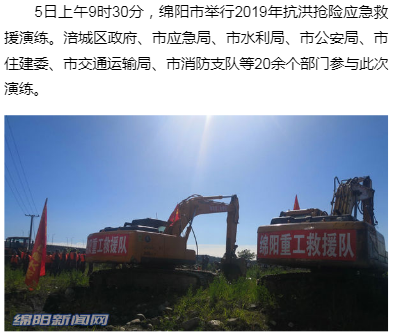 綿陽市舉行2019年抗洪搶險應急救援演練