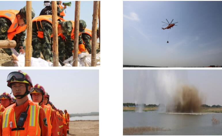 本次演練堅持以練為主、貼近實戰原則,結合濟寧市情,共設置了搶筑子堰、群眾轉移與衛生防疫、管涌搶護、爆破清障、打樁固堤、捆拋柳石枕、滲水搶險、決口堵復、應急排水、電力與通訊中斷搶險、水下搶險、聯合搜尋、水上救生與醫療救護、直升機空中救援與搶險設備空運等14個演練科目。