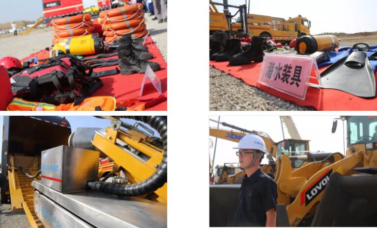 演練現場展示了現代化應急救援裝備,有24家單位,62輛應急救援車輛,6艘應急救援船只,352臺(套)應急救援設備參加展示。其中有參與過2016年武漢特大洪災、2018年山東壽光抗洪搶險和廣東抗擊臺風“山竹”等搶險抗災活動的排水設備,參加過12.25”平邑石膏礦坍塌事故和“3.28”山西王家嶺煤礦透水事故的功勛鉆機,應用于重慶萬州墜江大巴車救援的水下機器人,以及國內新研發出來的高科技產品,如鐵塔公司應急通訊系統、勝利新大新材料承壓墊板等。