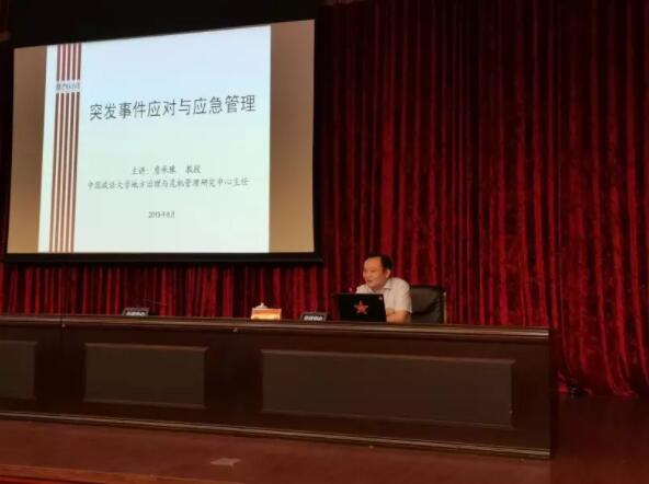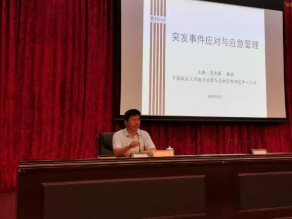 邀請中國政法大學公共事業管理系主任詹承豫教授為區領導,區安委會各成員單位、各鎮街道負責人,及全區應急管理、消防救援系統相關同志作“突發事件應對與應急管理”主題講課。