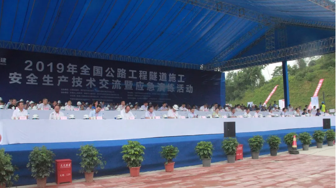 這是2019年全國公路工程隧道施工安全生產技術交流暨應急演練活動中的一幕。交通運輸部副部長劉小明出席活動并擔任演練總指揮。貴州省人民政府副省長陶長海、中交集團總經理宋海良出席演練活動。中國交建副總裁王建、總裁助理周靜波參加活動。