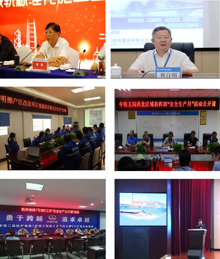 中鐵三局董事長郝剛進行“安全生產月”主題宣講,壓實各單位主要領導安全生產主體責任;中鐵大橋局董事長劉自明以《質量為本 安全為魂——新形勢下企業質量安全管理》為題,組織了安全生產公開課;中鐵大橋局安質部長吳杰良開展了以“明確安全生產責任落實 有序推進管監分離”為題的“安全生產公開課”。