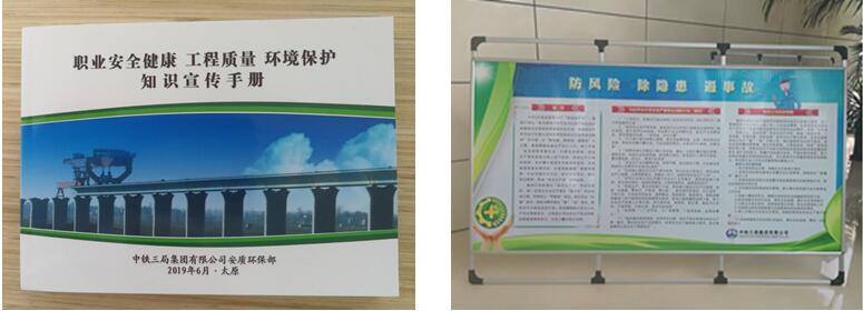中鐵三局制作了展板及1000本《安全生產 工程質量 職業健康 環境保護知識宣傳手冊》實時宣貫當前安全生產重點工作,進一步加強安質系統員工的監察主觀能動性。