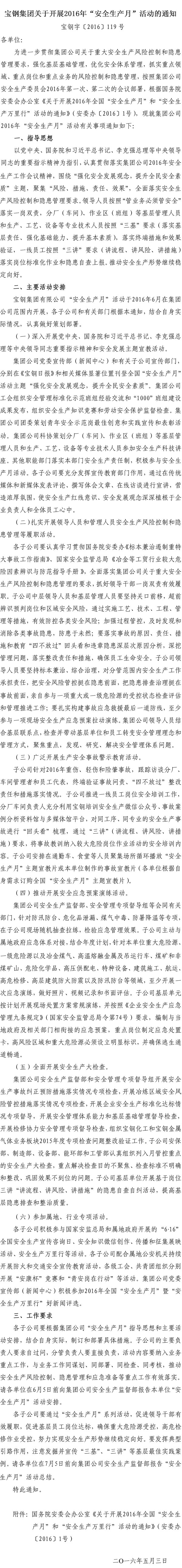 > 寶鋼集團有限公司2016年安全生產月活動方案