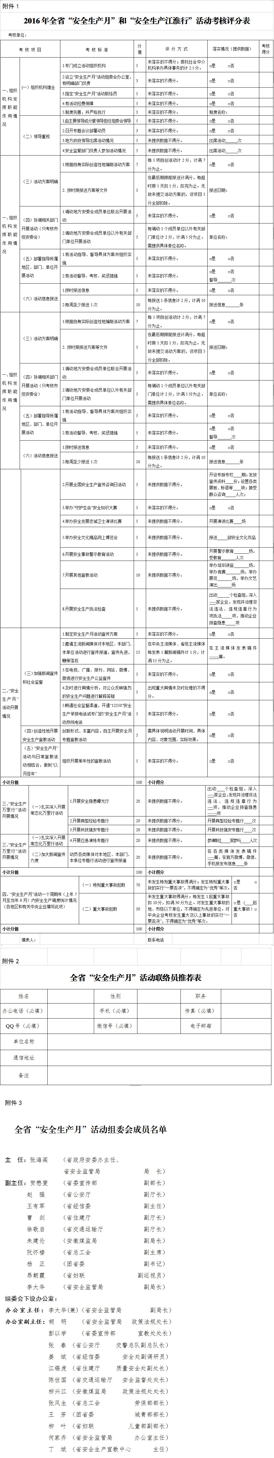 附件:1.2016年全省“安全生產月”和“安全生產江淮行”活動考核評分表