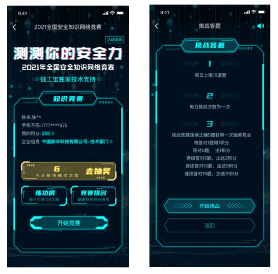 為鼓勵參賽者學習掌握更多安全知識,提高安全力,挑戰答題設置了抽獎環節。每答對5題,便可獲得一次抽獎機會,每天最多可獲得3次抽獎機會,獎品設置豐富多樣。