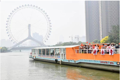 天津市“安全生產萬里行”活動啟動儀式現場視頻連線全國“安全生產月”啟動儀式主會場,“津安號”安全生產主題游船鳴笛起航。