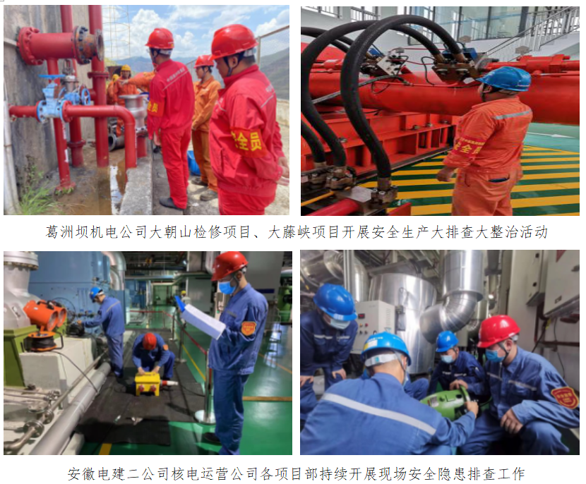 深入開展大排查大整治。中國能建組織所屬企業結合公司建黨100周年安全生產保障、行業涉穩風險排查、工程分包管理問題專項治理等有關工作安排,堅持領導帶隊檢查、綜合監管安全檢查、專業管理安全檢查、“回頭看”檢查、“四不兩直”督查并舉,統籌組織開展安全生產大排查大整治;開展“安全紅袖章”“事故隱患大掃除”“爭做安全吹哨人”行動,對事故易發多發、易造成人員傷亡的重點環節進行全面細致地自查自糾和督查督辦。