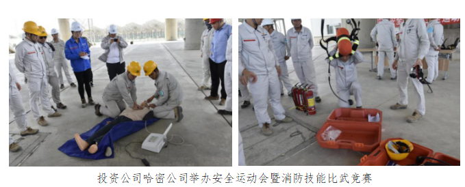 投資公司哈密公司舉辦安全運動會暨消防技能比武競賽,將消防安全知識與消防技能、體育素質、趣味運動結合,共設置了心肺復蘇、消防栓水帶連接、正壓式呼吸器佩戴、滅火器滅火四個環節。