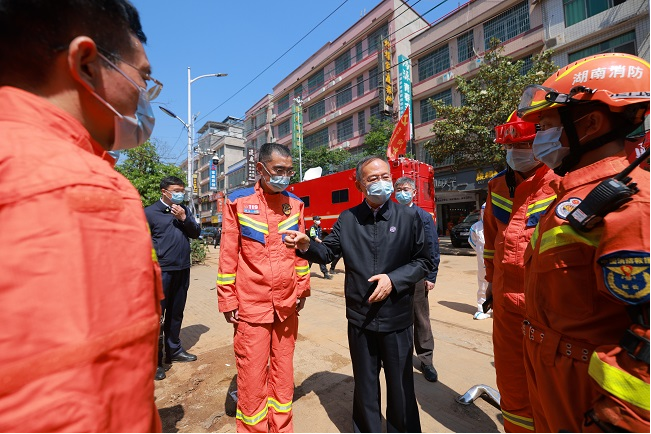 黃明看望慰問湖南長沙居民自建房倒塌事故救援一線消防救援人員
