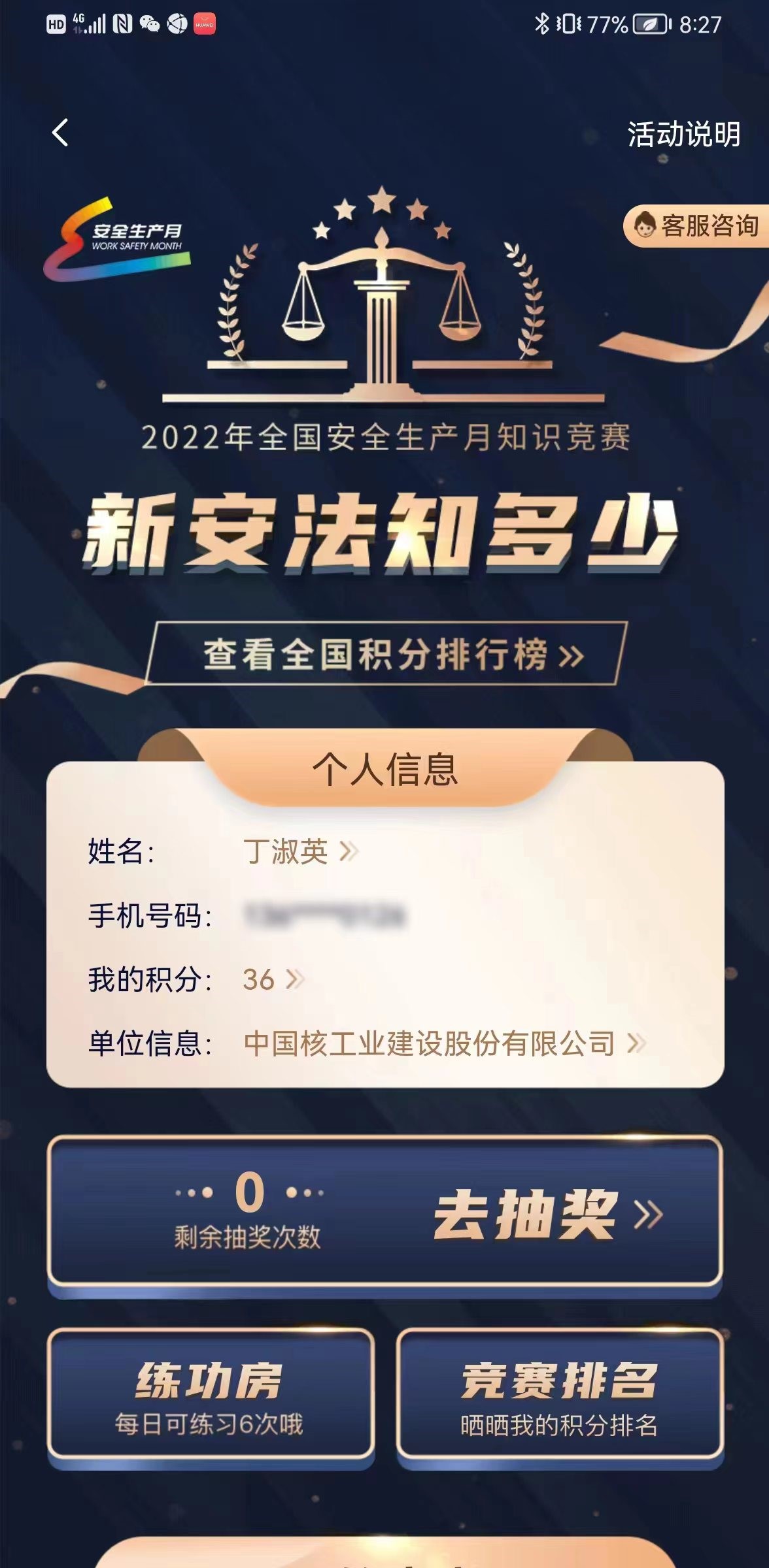 中國核工業建設股份有限公司以“新安法知多少”知識答題,安全開啟每一天
