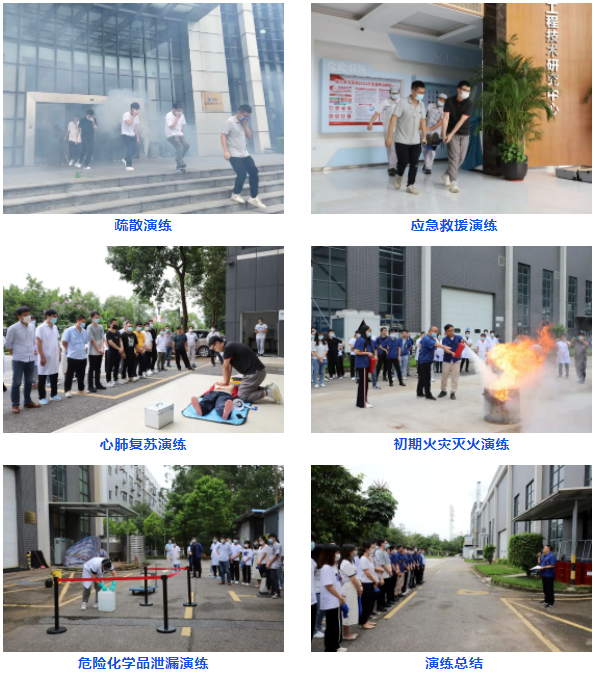 本次演練以公司安全生產辦主辦,檢測所承辦,科學城后勤保障中心和各經營實體協辦的形式展開,通過各參演單位的精心組織、周密安排和密切配合,演練模擬初期火災引起一系列事故情形,內容包含了消防緊急疏散、初期火災滅火、灼燙傷醫療急救、觸電事故醫療急救和化學品泄漏處置等,演練達到了預期效果,取得了圓滿成功。