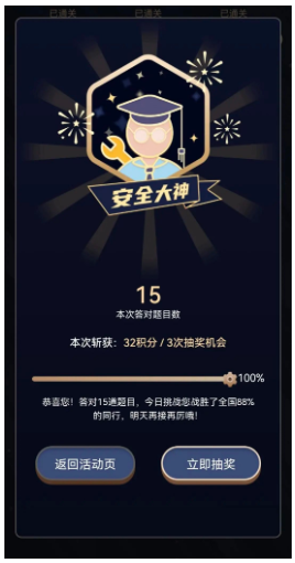 組織開展“新安法知多少”知識競賽,在廣大員工中掀起一股對新安法學習的熱潮,競賽積分節節攀升。