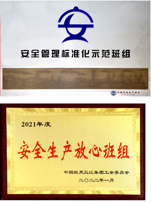 憑借扎實嚴密、科學有效的安全生產舉措,班組高品質、高效率、零風險地完成了諸多型號任務,做到安全生產“零事故”,并榮獲“全國安全管理標準化示范班組”、“航天科工巾幗建功先進集體”、“航天三江安全生產放心班組”等諸多榮譽稱號。