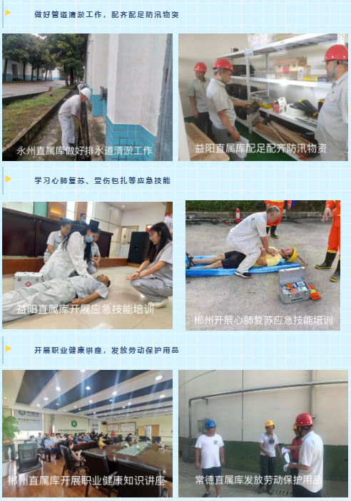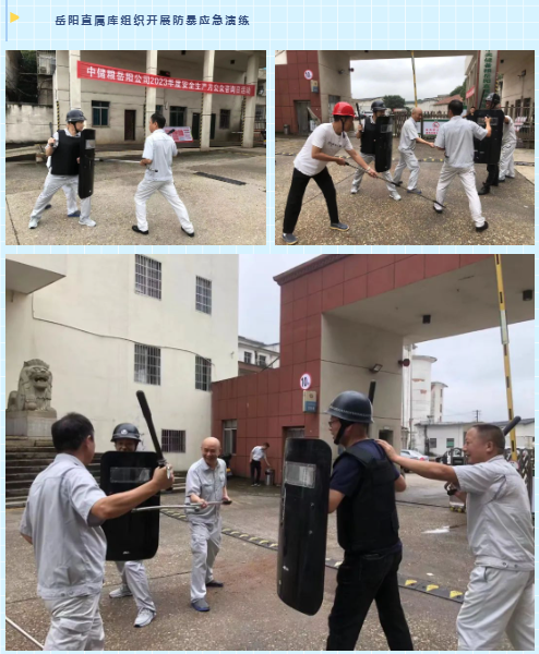 湖南分公司轄區48個庫區全面開展“護安全”活動,提高企業應急救援能力。認真落實《中儲糧集團公司安全生產事故應急預案》(2022版),開展事故風險評估,修訂完善企業應急預案;結合夏季防火防汛特點,轄區48個庫區組織開展了消防應急預案演練,努力提升處置能力,力爭達到“1462”火災處置標準。岳陽直屬庫組織開展防暴應急演練。6月中旬,分公司在在湘潭召開了政企聯合消防應急演練。認真組織庫區管道清淤工作,配齊配足防汛物資,做好防汛準備;學習心肺復蘇、火災撲救、受傷包扎等應急技能,提升員工自救能力;結合“我為群眾辦實事”實踐活動,落實職業健康體檢,發放勞動保護用品,強化職業病防護力度,營造“關愛生命、關注安全”的濃厚活動氛圍。