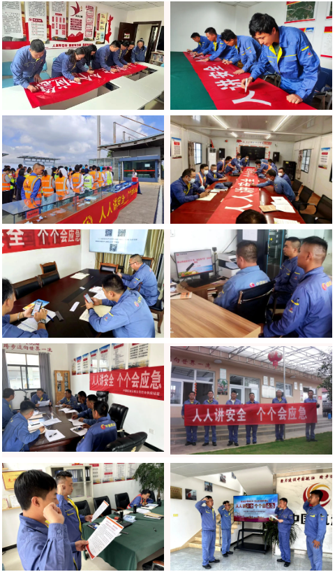 各單位在重要區域、重點場站張貼懸掛安全標語、橫幅、海報,利用電子大屏滾動播放安全宣傳片,通過網絡客戶端參加鏈工寶知識競賽、“逃生演練訓練營”,開展“安全生產月,黨員先鋒行”、技能比武等活動,全力營造“安全生產月”活動氛圍。