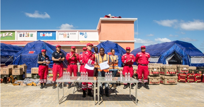 2019年,非洲東南部遭受西印度洋熱帶氣旋“伊代”襲擊,造成重大人員傷亡和財產損失。災害發生后,按照原消防救援局和總隊統一部署,第一時間集結中國救援隊水域救援分隊骨干力量,攜帶橡皮艇、繩索、雷達、蛇眼等器材裝備2.25噸,趕赴莫桑比克貝拉市開展救援行動。連續10天的救援中,分隊制定了“租借船只、大船跨海航行、小舟內河挺進”的救援行動計劃,高效完成了遠程陸路搜救、跨海水域救援、防疫洗消等救援任務,成為了第一支整建制抵達布滋“孤島”災區、第一支為災區轉運傷員的救援隊伍。隊員們克服瘧疾、霍亂等傳染病風險,轉移孤島被困人員6名、發放食品物資4000余份、洗消面積達29.58萬平方米。