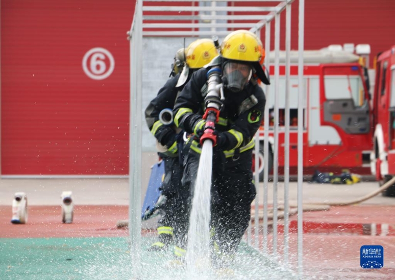 寶塔消防救援站消防員開展縱深滅火救人操訓練(資料照片)。 新華社發