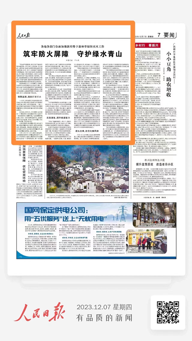 安徽省黃山市試點森林防火網格化管理,建立“區、鄉鎮、村居、護林員”四級森林防火網格;湖南省衡陽市南岳區利用森林防滅火指揮部短信平臺及景區微信公眾號向來到衡山的游客發送防火信息……對于國家公園、城市面山、森林公園等重要區域和重要目標,各地廣泛發動群眾,突出宣傳教育、源頭管控,努力營造全民參與、網格覆蓋、群防群治的防火氛圍。