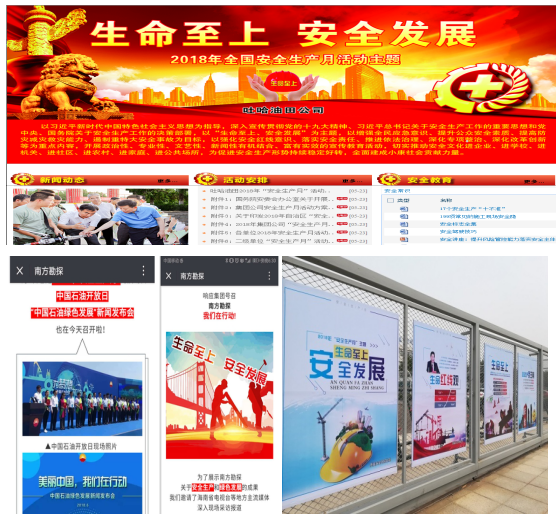 各企業通過公司網站、微信平臺、LED大屏幕、設置展板、掛圖、條幅標語、安全知識宣傳等進行安全月活動宣傳。