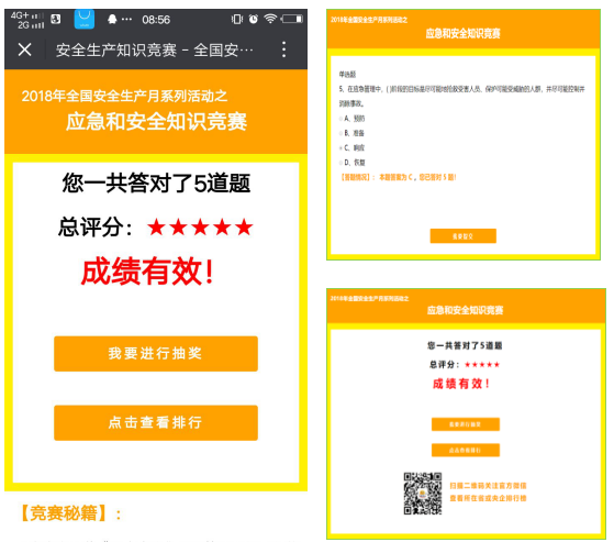 各企業結合本單位業務特點,及時傳達典型事故事件,強化風險預警,組織員工參加安全知識講座。關注全國“安全生產月”活動官網和“國家安監總局宣教中心”微信公眾號,組織員工進行應急和安全生產科普知識答題活動。