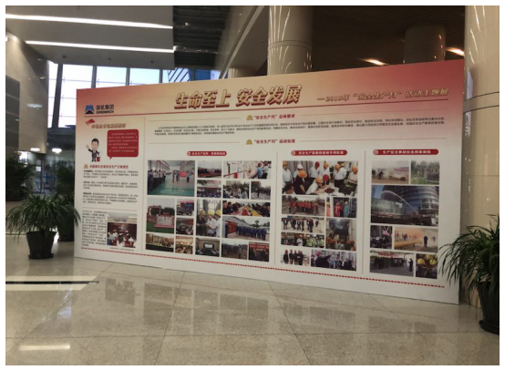 1、國機集團總部根據集團公司制定的“安全生產月”和“安全生產萬里行”活動方案制作宣傳展板,擺放在辦公區大廳展示,宣傳“生命至上、安全發展”主題思想。