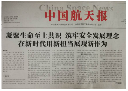 6月7日,《中國航天報》刊發了集團公司黨組書記、董事長、安委會主任高紅衛的署名文章——《凝聚生命至上共識 筑牢安全發展理念 在新時代用新擔當展現新作為》。高紅衛董事長在文章中要求集團公司全級次單位、各級領導和全體人員以2018年全國“安全生產月”和“安全生產萬里行”活動為契機,深入宣教習近平總書記應急管理重要思想,進一步加強安全生產和應急宣傳教育,不斷提高全體人員安全素質和應急避險能力,用安全發展的新成效推動企業提質增效升級、做強做優做大。