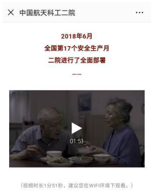 2018年“安全生產月”開展以來,二院在組織參加國家、國防科工局和集團公司一系列豐富多彩、內容多樣活動的同時,自創性開展了安全生產原創主題海報設計大賽、“我來講安全”短視頻征集評比、典型經驗巡回演講等活動,并制作了《讓安全生產與愛同行》主題宣傳片,在二院官方微信平臺推出。