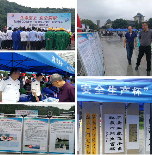 宣傳活動豐富多彩,設立咨詢服務臺,宣傳安全生產相關法規、政策。溫嶺市海洋與漁業局在現場發放各類安全宣傳資料700多份,擺放《漁船事故警示案例》(、《預防漁船事故系列談》、《漁船安全生產須知》、《關于嚴格落實漁船船東船長主體責任的通告》、《漁船船東船長應履行的安全生產責任》等安全宣傳牌20余塊,展出“安全生產杯”書畫作品50余幅,吸引了廣大市民的圍觀。