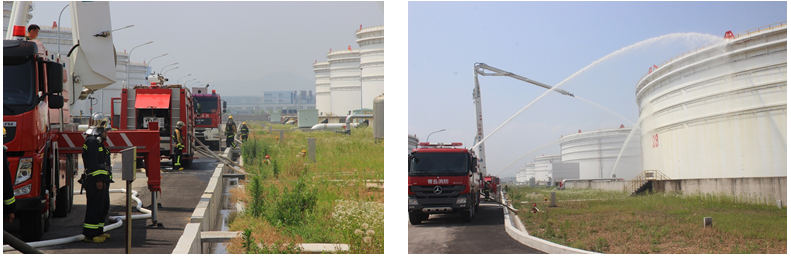 2018年06月15日上午9:30,青島煉化公司聯合青島市消防支隊、黃島國家原油儲備庫、麗東化工消防隊等單位在黃島國家原油儲備庫舉行2018年度軍企聯勤聯訓消防實戰演練,有效檢驗了企地聯合作戰、聯合調度指揮應對重大火災等應急救援任務,聯合保障救援現場裝備和物資供應的能力。