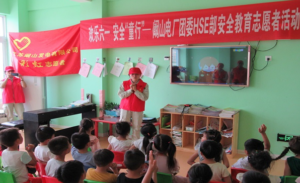 國家電投所屬闞山電廠團委、HSE部、發電部、生技部青年志愿者來到高莊村幼兒園,讓安全教育走進校園,給大班的小朋友們上了一堂生動的安全知識教育課,受到了幼兒園老師、家長和小朋友們的熱烈歡迎。