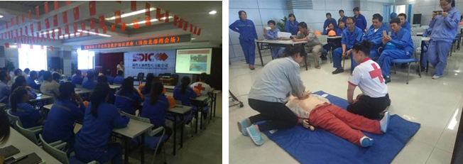 為提高員工自救與互救能力,普及急救知識,6月15日,公司委托北海市紅十字會急救中心專家開展急救培訓。重點講解心肺復蘇的正確操作方法,并給與指導練習。對常見意外傷害(觸電、高空墜落、燒燙傷、中暑等)的現場急救原則和處理方法進行了詳細講解。通過培訓,進一步提高了公司及承包商員工應對現場突發急救事件的能力,提高全體員工的健康意識、預防意識、救護意識。