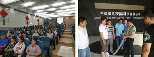 (四)中航國際經貿公司:經貿公司下屬中航御銘(安陽)組織員工觀看安全生產月事故案例警示片;邀請安陽市社安防火中心對公司員工進行消防安全知識講座,并組織義務消防員進行滅火演練;同時開展消防安全檢查。