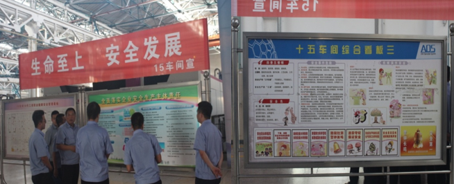 2.本周公司各車間懸掛“安全月”為主題的條幅、工作現場張貼宣傳看板、播放安全月宣傳視頻等,7個單位展出60塊。