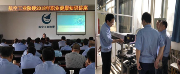 (三)航空工業陜硬:由總經理王叢旭帶領生產保障部、綜合管理部、計劃財務部等9人對全廠進行了安全大檢查,發現一般安全隱患18項,并通知相關部門進行整改。邀請專家開展職業病防治健康專題講座,增強員工對職業病風險的認識。