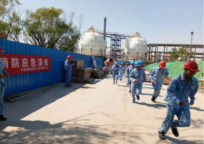 2、中國浦發機械工業股份有限公司所屬中國能源中機煉化天津石化消防水項目開展消防應急演練活動。