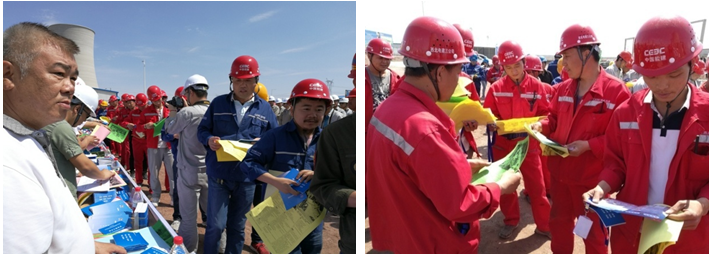 中國能建天津電建在現場發放“員工常見不安全行為”、“急救、自救、互救安全常識”、“消防安全常識”等安全宣傳材料,通過現場互動交流的方式,使一線員工從單純的被動接受教育到相互間的交流與溝通,使“強化安全基礎 推動安全發展”的理念深入人心,有效增強員工安全生產意識,推進安全生產工作持續深入;山西電建保德項目部、平朔項目部、朔南項目部、基礎公司等單位在項目現場發放各類安全宣傳品,向大家宣傳安全生產法律法規、消防安全、職業病預防、防護救援等知識,講解“安全帶、水平滑移器、攀登自鎖器、防護目鏡”等安全防護用品的正確使用方法,以寓教于樂的方式強化員工安全意識;山西院通過發放安全生產錦囊妙計口袋書、安全生產宣傳教育折頁、安全生產圖文知識系列手冊等學習資料,切實提高員工安全意識;安徽電建一公司各單位為一線作業人員發放安全口袋書、明白卡、安全宣傳手冊等學習材料,傳播安全發展理念、宣傳安全生產知識。與此同時,公司所屬其他單位全面開展安全生產宣傳咨詢日活動,掀起人人學安全、人人講安全的熱潮。