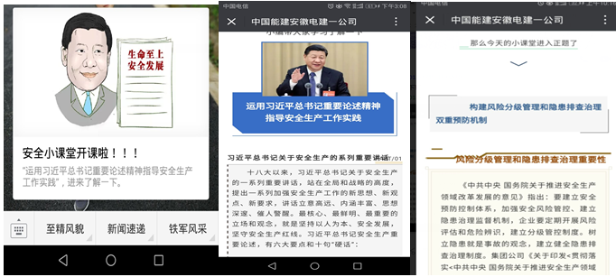 中國能建集團上下聯動開展安全發展主題宣講活動。中國能建及所屬單位通過報刊、廣播、網絡等媒體,積極宣傳安全生產理念、傳達安全生產精神。開展了“企業一把手講安全”、邀請安全專家進行“生命至上 安全發展”專題講座、“安全伴我行”主題宣講、宣講團主題宣講進現場等活動,通過觀看宣傳錄像、基層座談、發放學習讀本等形式,有針對性的開展全方位、多角度、立體化的集中講解,宣講安全生產法律法規和知識技能,傳播安全文化,普及安全知識,教育引導全員堅持安全發展觀,牢固樹立安全生產紅線意識和底線思維,促進安全生產理念深入人心。推動習近平總書記關于安全生產的重要思想進企業、進項目、進班組,營造出濃厚的安全生產氛圍。