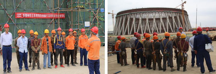 中國能建天津電建準東二期項目部開展腳手架拆除前防坍塌應急演練