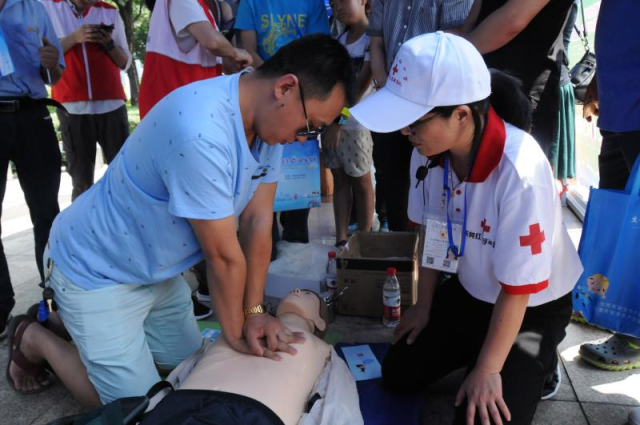 ☆市紅十字會組織應急救護演示活動(包括心肺復蘇、氣道異物清除、創傷包扎、AED使用等演示)......