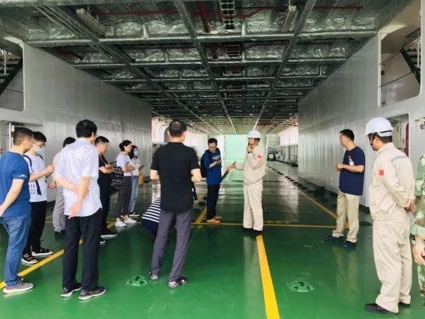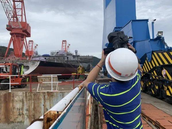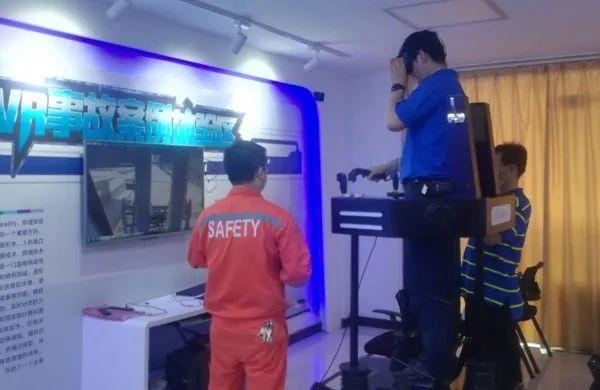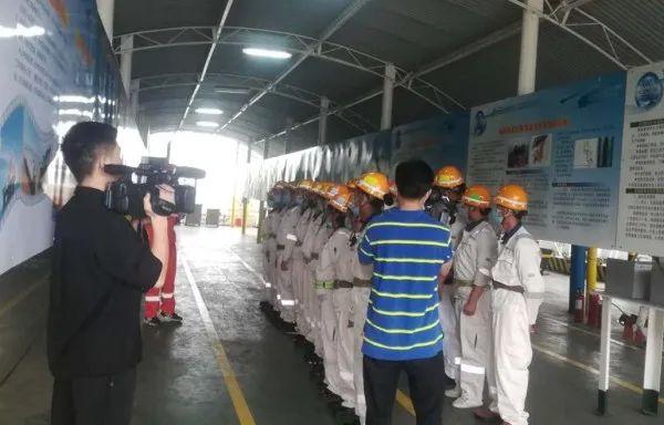采訪團一組來到六橫島,觀看了舟山中遠海運重工員工上班時崗前教育培訓場面,參觀了該公司的VR智能安全體驗館。